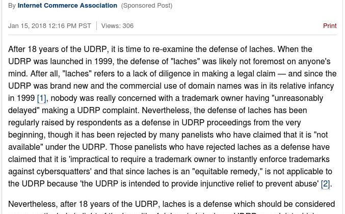 NEW YORK, NY – As the saying goes, actions [always] speak louder than words. I came across some material today on Circle ID that certainly merits some highlighting; reason being, all domainers should know about it. A Re-Examination of the Defense of Laches After 18 Years of the UDRP, by Internet Commerce Association With some much going wrong in the world these days, boy does it feel good to see something ‘going right’ once in a while. First off, If you are a … [Read more...]
