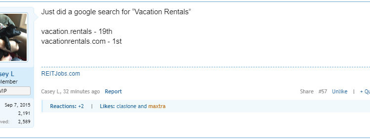 PALM BEACH, FL – About a year and half ago in April of 2018, I wrote about an out-of-the-ordinary domain name sale when the new gTLD domain “Vacation.Rentals” changed hands for a little over ‘half a million’ in cash, supposedly. I still sort of question the sale as either authentic and insane - or completely bogus, intentionally and strategically planned to not only create industry buzz, but boost sales for nGTLDs. Either way, and it probably doesn't really mater … [Read more...]